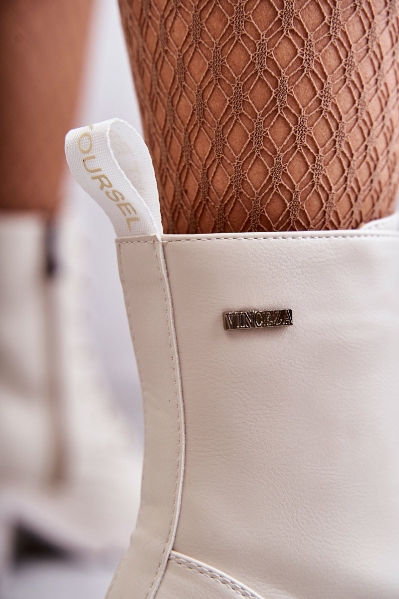 A model made of eco leather, mounted on a thick, massive sole. Warming from a shoe blanket makes them perfect for colder days. A stable heel ensures comfort for long hours. The boots have a binding and a zipper closure. Eco-leather boots are an excellent choice for autumn stylizations. You must have them! When choosing a size, please use the size chart.