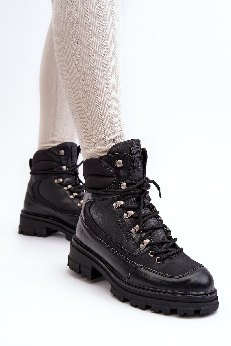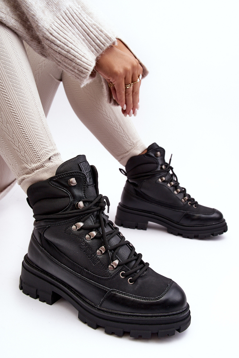 Women's boots - Big Star brand trappers have been made from eco leather. Set on a flat heel and platform made of rubber material. Classic lace-up model. The interior is insulated with a shoe fur. The toe is stiffened. The noses are rounded. When choosing a size, please refer to the size chart.