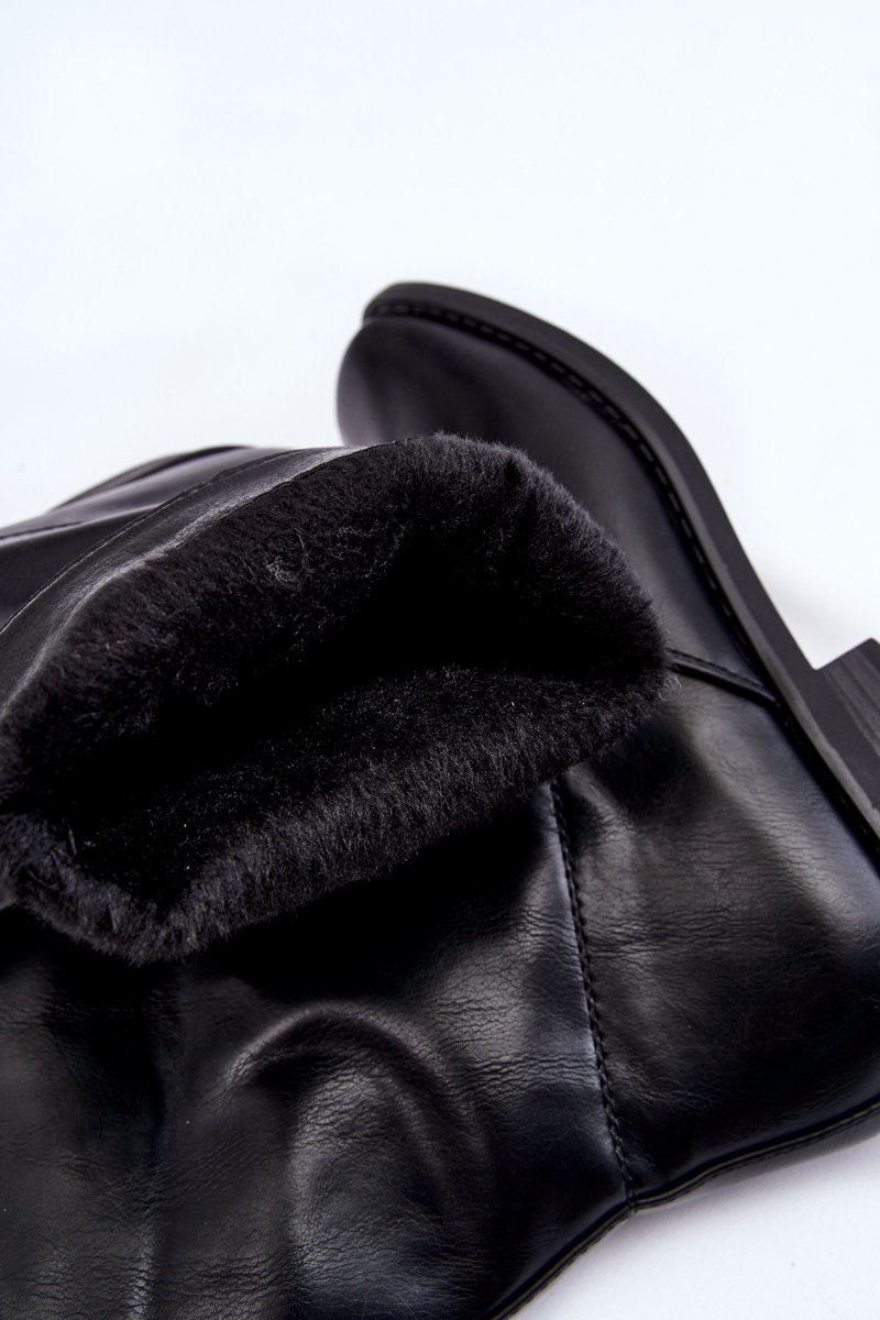Women's boots are made of eco leather. They have warming in the form of a delicate fur, which perfectly protects against the cold. Square nose. The boots were set on a flat heel and a delicate platform. Stiffened heel counter will ensure proper stabilization of the foot. You should have them! When choosing a size, please refer to the size chart.