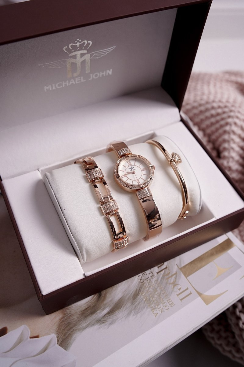 Women's Watch and Two Bracelets Set Michael John Pink Gold