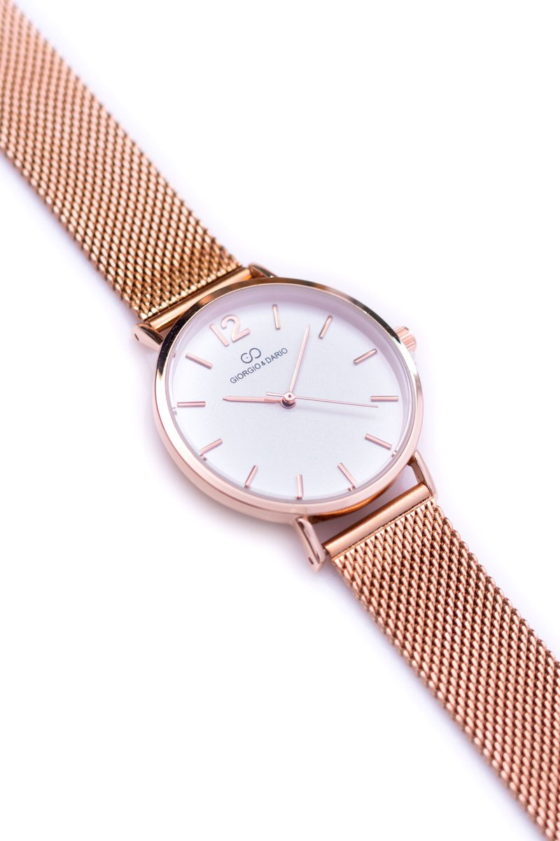 The Libre watch by Giorgio & Dario is a treat created for women who love tasteful accessories not only for elegant but also for everyday styling. The watch has a flat bezel, making it look even better on the hand and at the same time more legible. Delicate steel bracelet in the color of the envelope kept in the color of rose gold made of surgical steel. Possibility of easy and quick adjustment. High quality workmanship of the mechanism and the envelope.