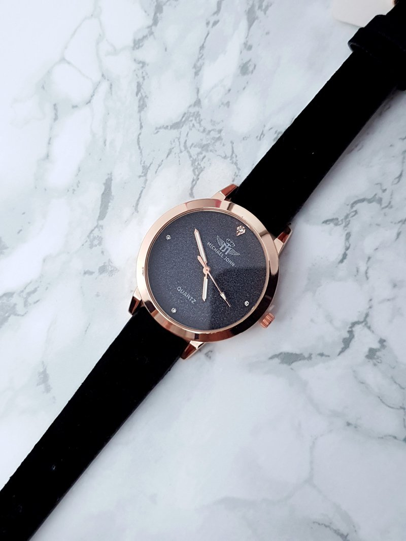 Women's Watch Michael John Evento Black Suede Strap Brocade