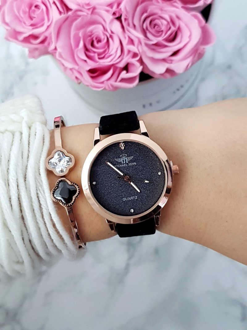 They say that "Diamonds are a woman's best friends". - there is certainly a grain of truth in this statement, but we don't quite agree with it. An equally tasteful addition to a woman's closet is a well-chosen watch. The Evento model by Michael John is a treat for ladies who appreciate a tasteful look in any situation. Beautifully decorated with brocade dial and suede strap. Reach for the highest quality of the Michael John brand. Each watch is packaged in a decorative box.
