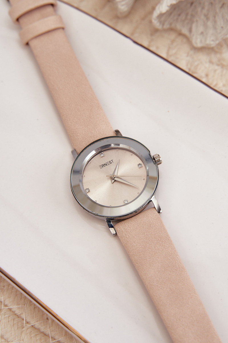 Classic women's watch by Ernest. Strap made of eco leather. The minimalist design makes it perfectly suitable for various stylings, adding a subtle elegance to them.