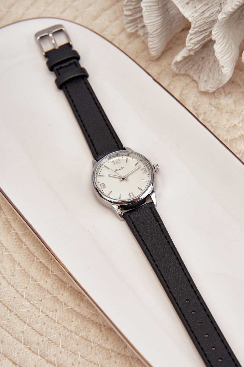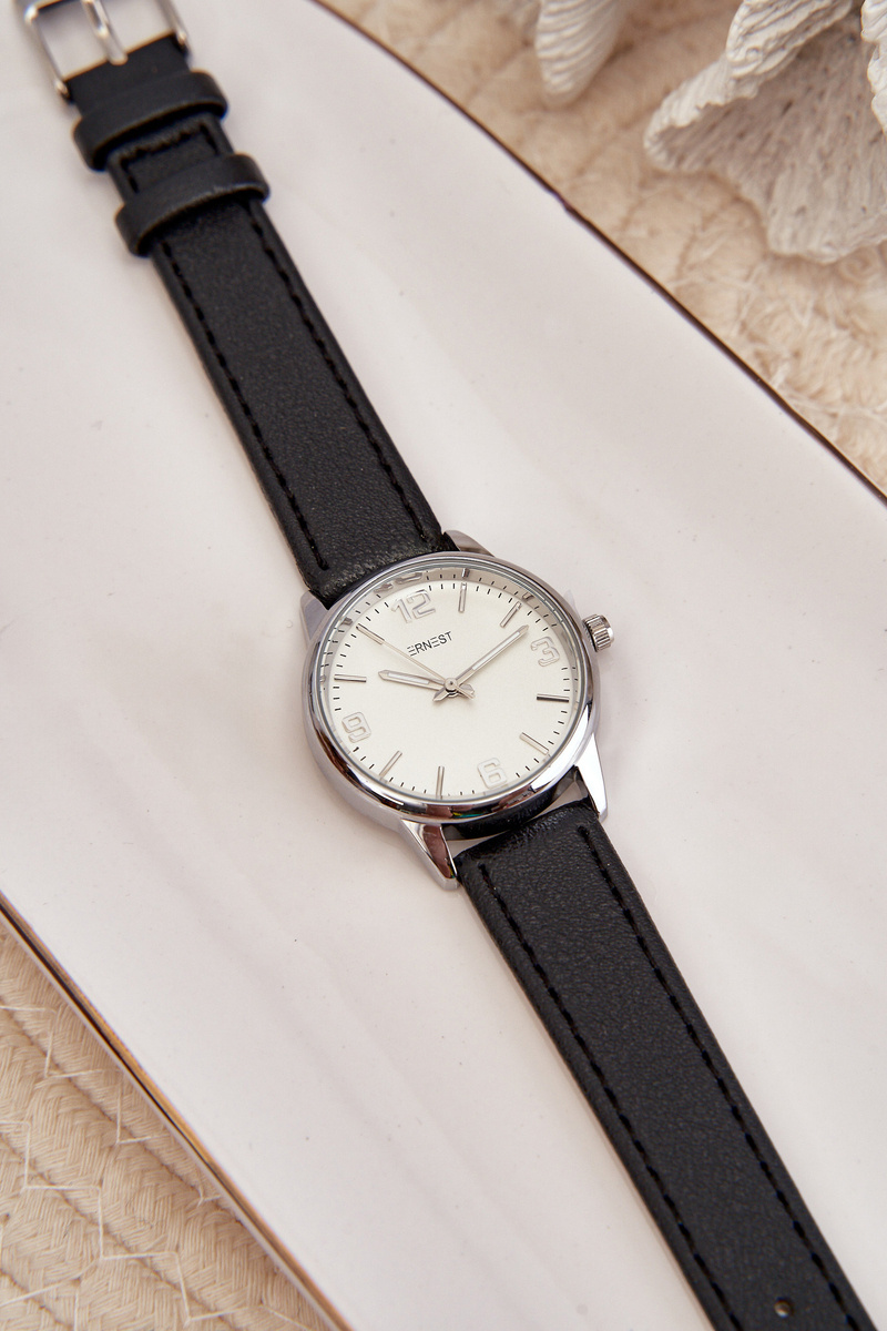 Women's watch by Ernest brand in classic style. Strap made of eco leather. Simple yet stylish design makes it a perfect addition to everyday and evening outfits. You definitely should have it!
