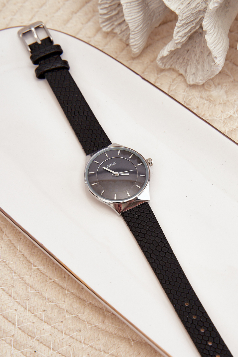 Women's Watch with Faux Leather Strap Black Ernest E62013L