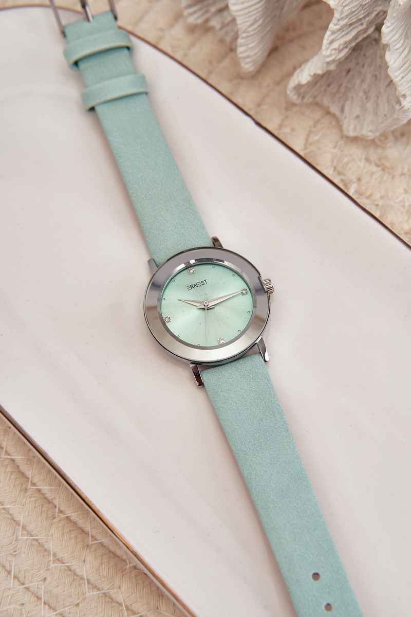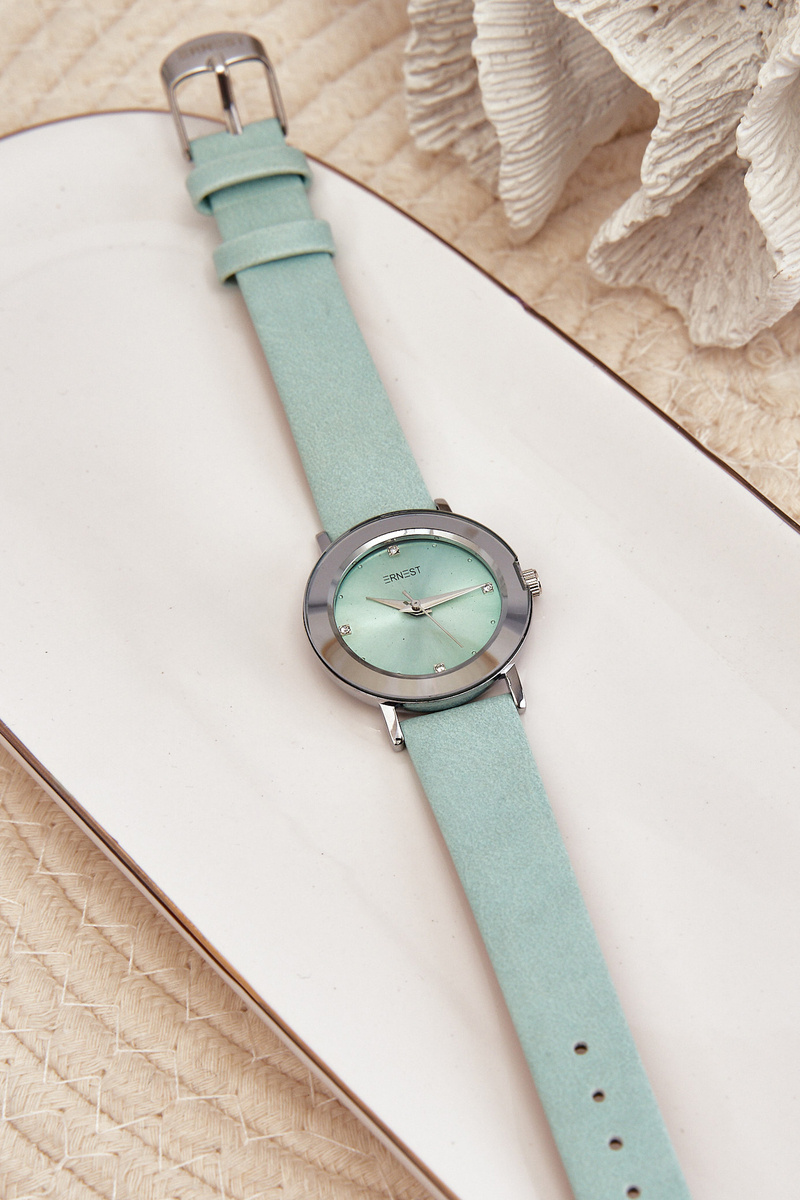 Classic women's watch by Ernest. Strap made of eco leather. The minimalist design makes it perfectly suitable for various stylings, adding a subtle elegance to them.