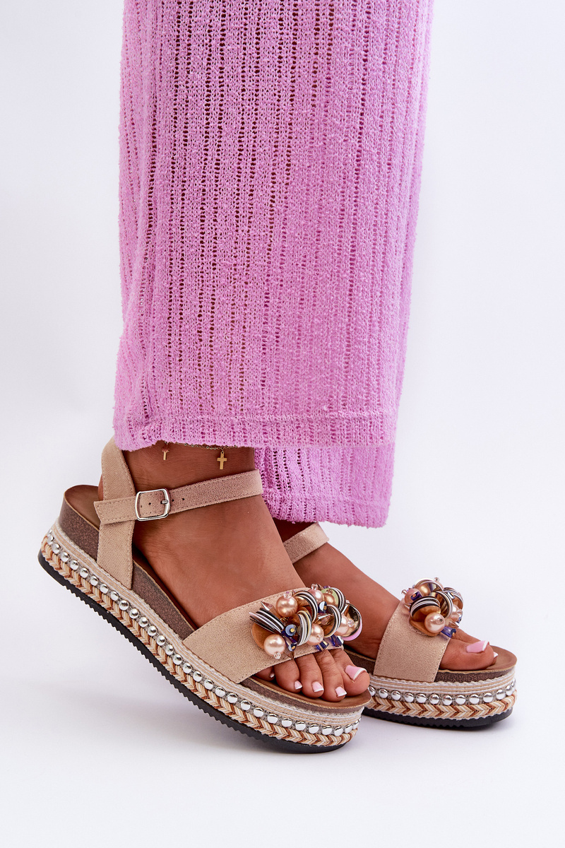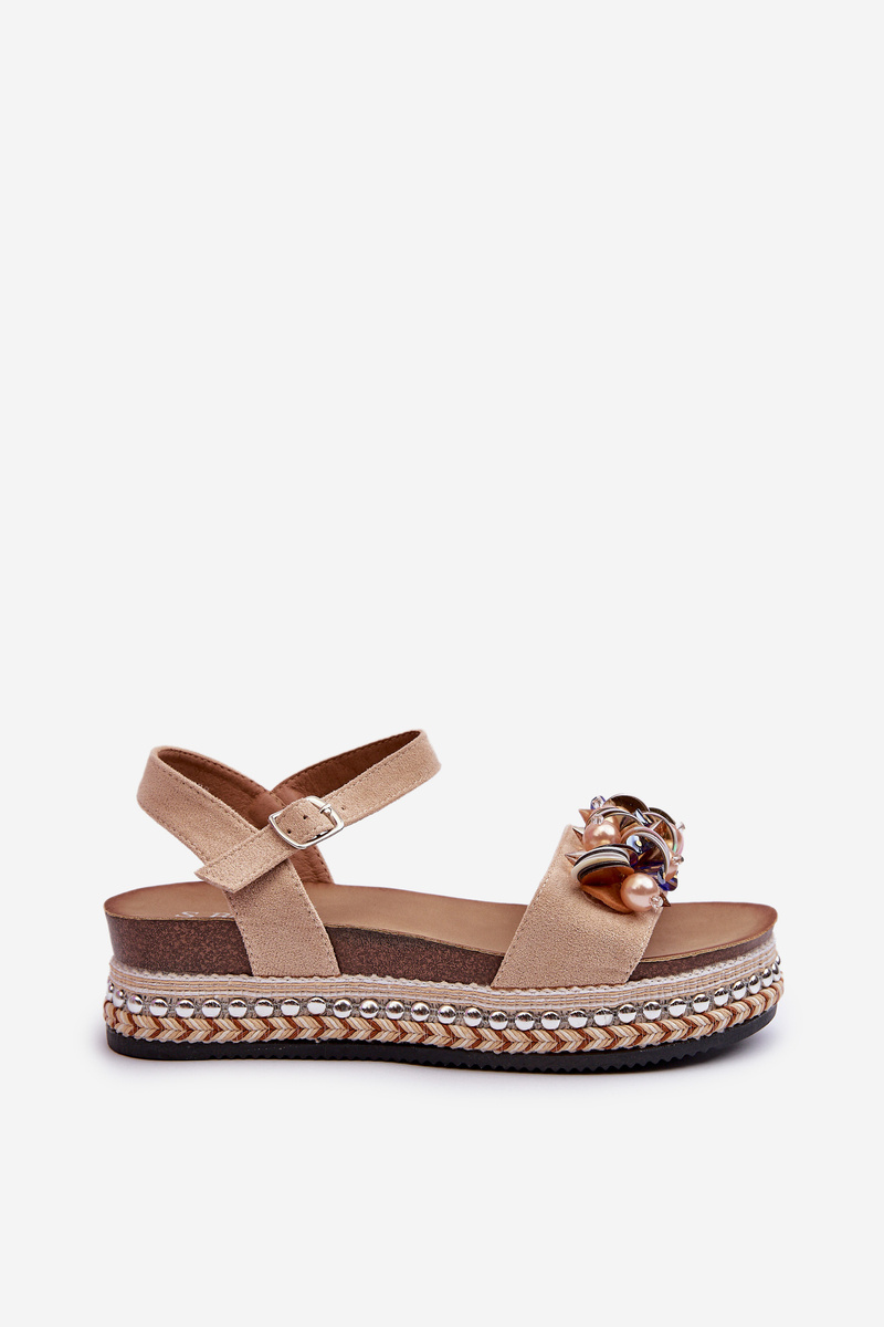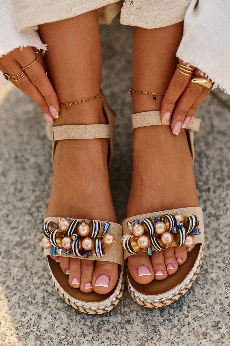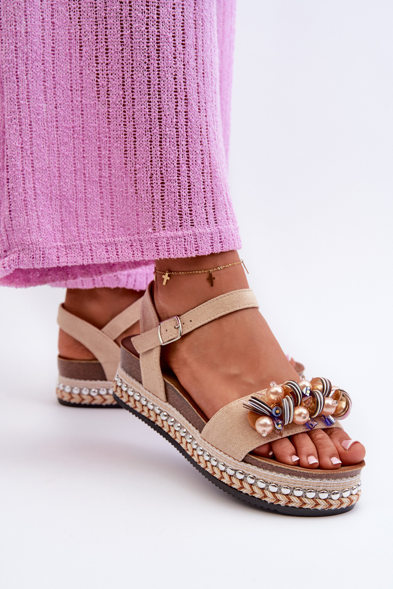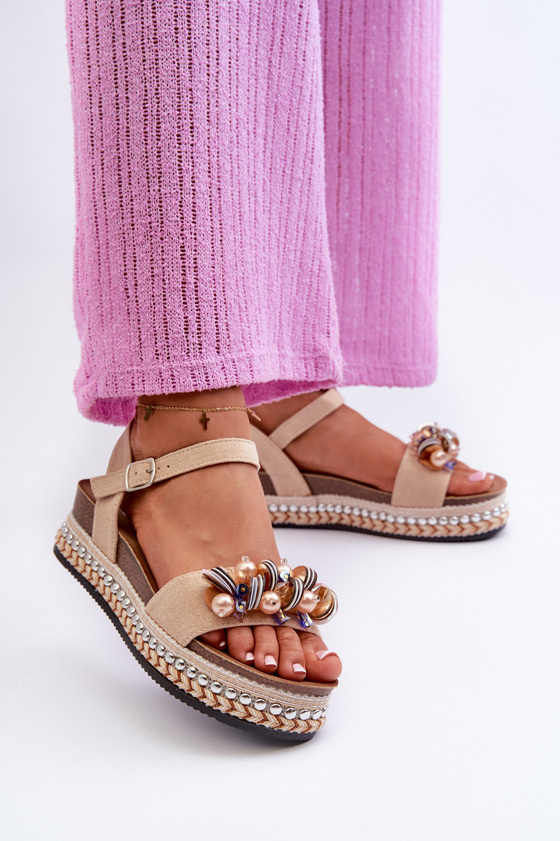 Women's Wedge and Platform Sandals with Decorations S.Barski HY056 Beige