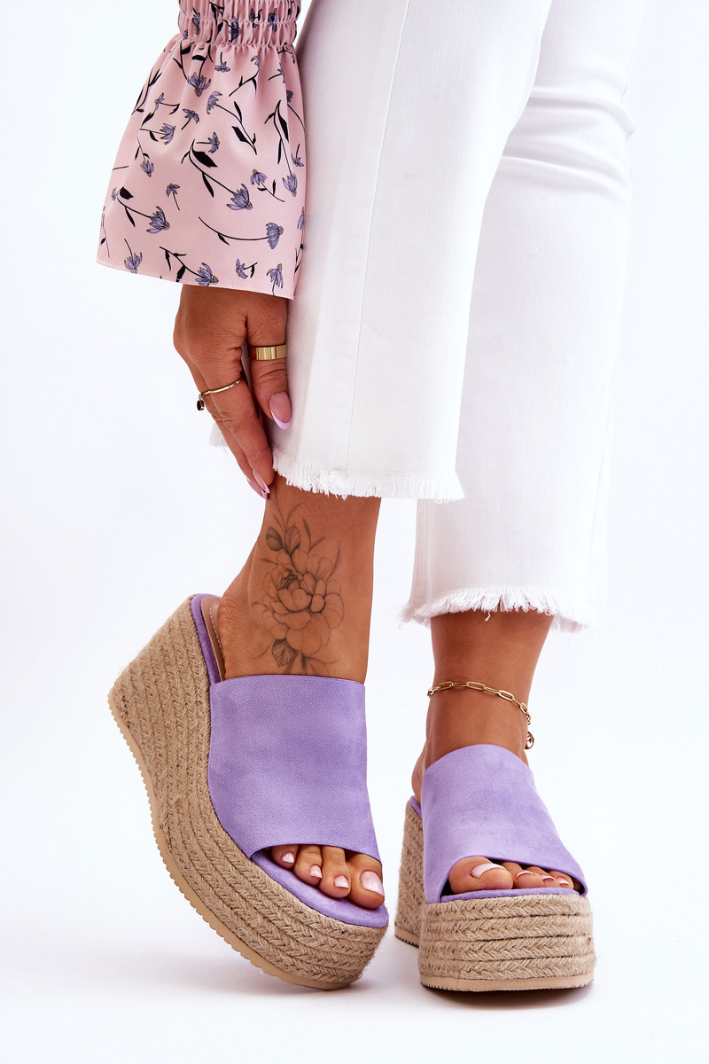 Classic, women's flip-flops have been set on a massive platform and wedge heel, which have been additionally decorated with braided jute braids. Made of pleasant to the touch eco suede. The soft insole is made of eco leather. Classic model, slip-on. These flip flops are a great choice for hot summer days! When choosing a size, please refer to the size chart.