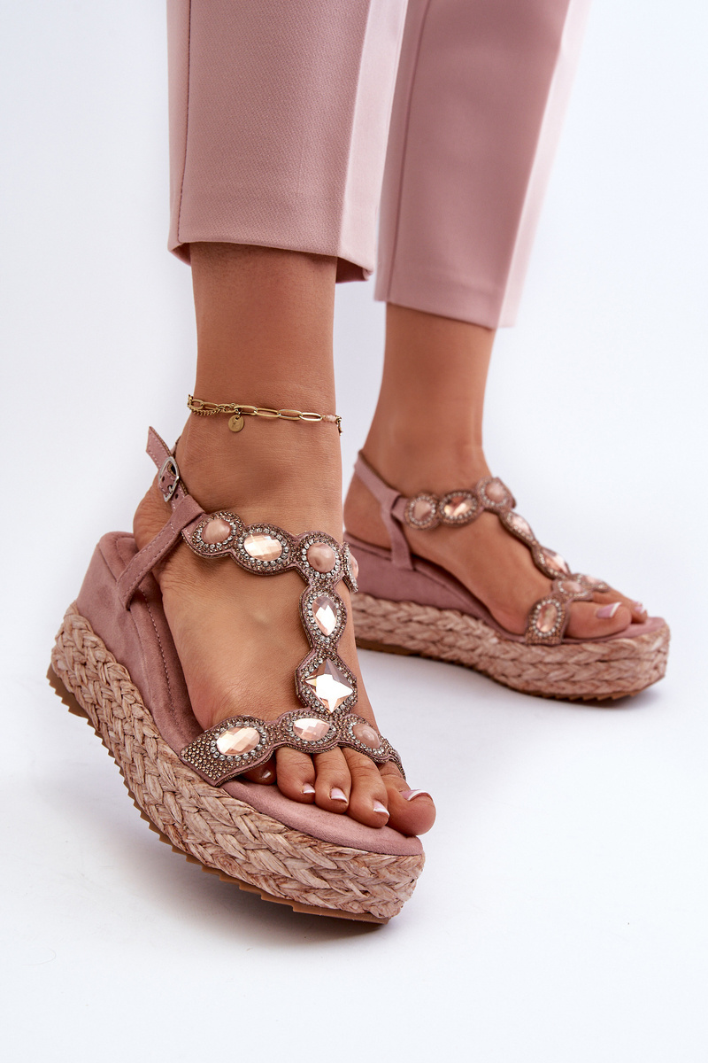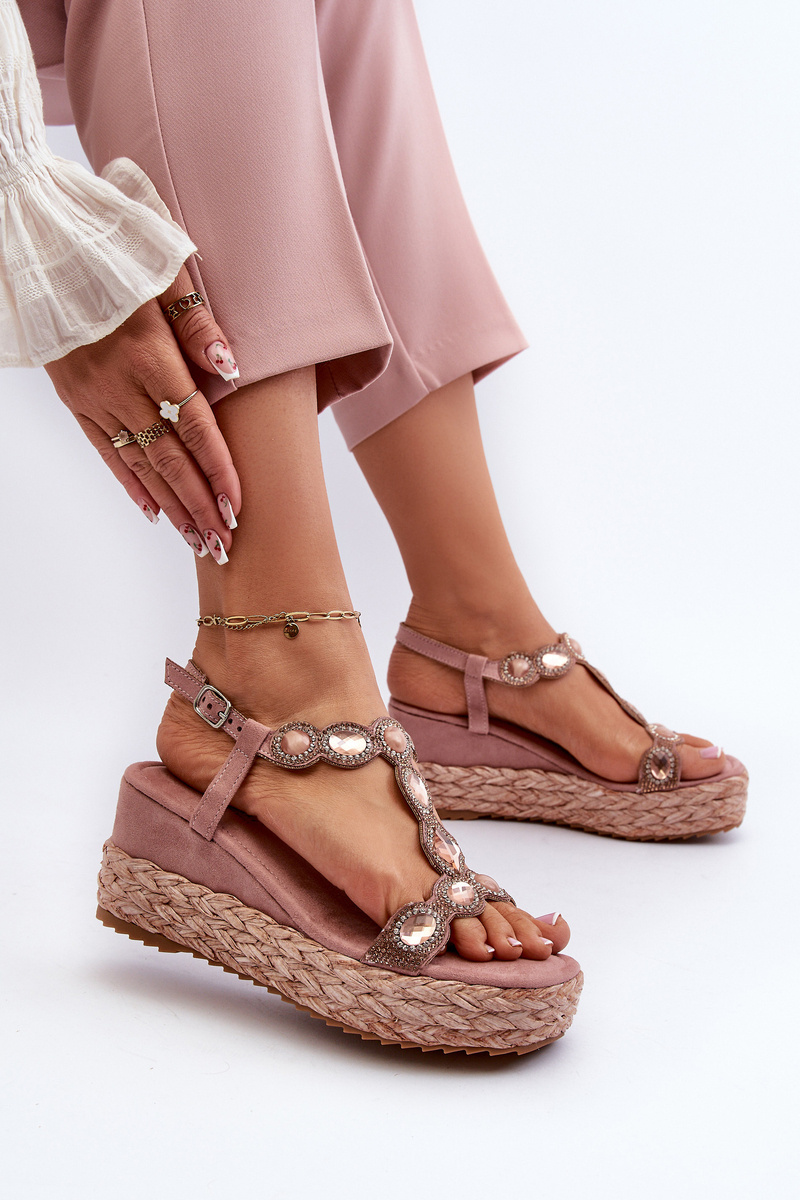 Women's Wedge Sandals with Braided Detail S.Barski MY291 Pink