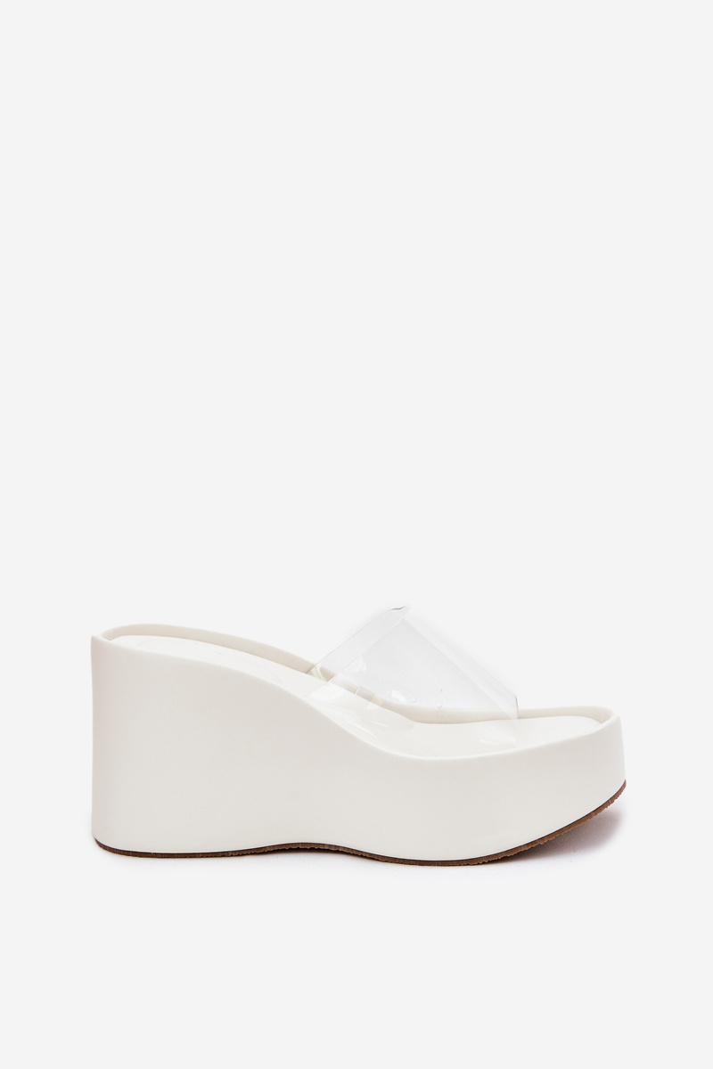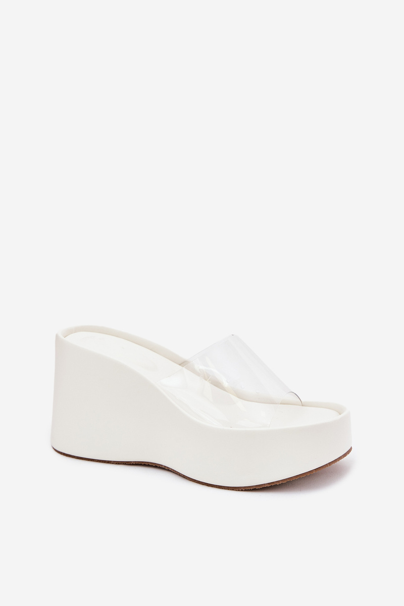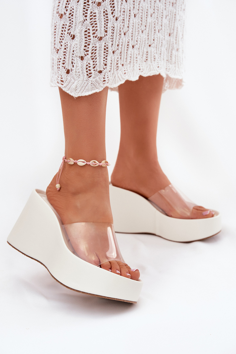 Women's sandals with a transparent strap are a stylish choice for warm days. Set on a wedge with a platform, they provide comfort and stability, while adding lightness and style. The transparent strap gives them a modern character, perfectly complementing summer dresses or pants. Ideal for everyday use or evening outings. When choosing a size, please refer to the size chart.