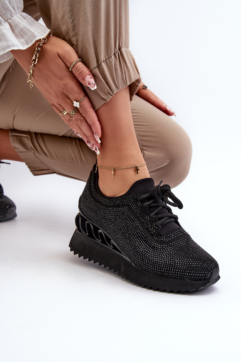Women's Wedge Sneakers Adorned with Zirconia D&A MR38-377 Black