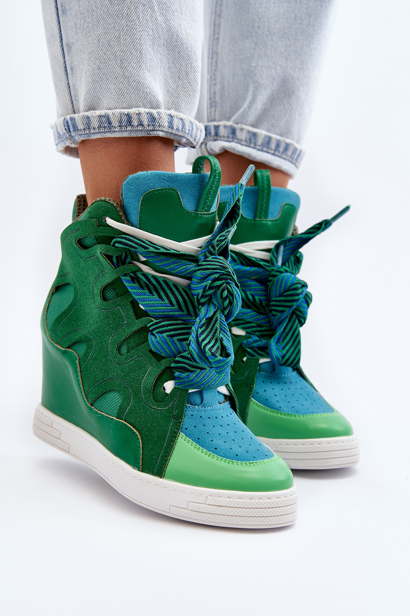Women's Wedge Sneakers Green Leoppa