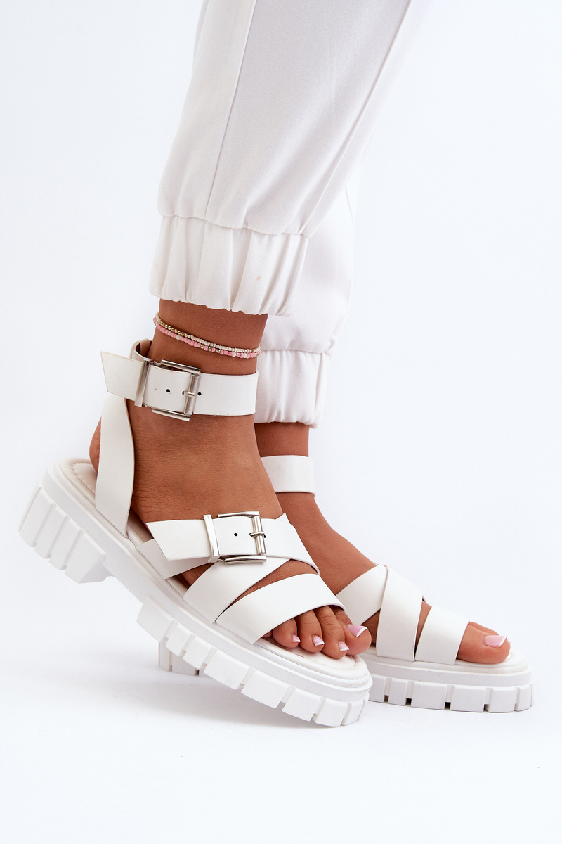 Women's sandals made of eco leather. Set on a platform and flat heel, they provide stability and comfort while walking. Fastened with an adjustable strap with a buckle, guaranteeing a perfect fit to the foot. Additionally, the soft insole makes even long walks comfortable and pleasant. Ideal for summer days and evening outings! When choosing a size, please refer to the size chart.