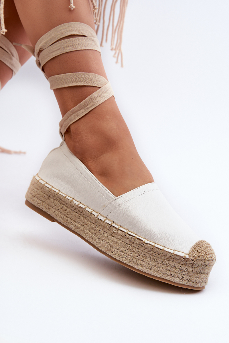 Women's White Lace-Up Platform Espadrilles with Braiding Tailesse