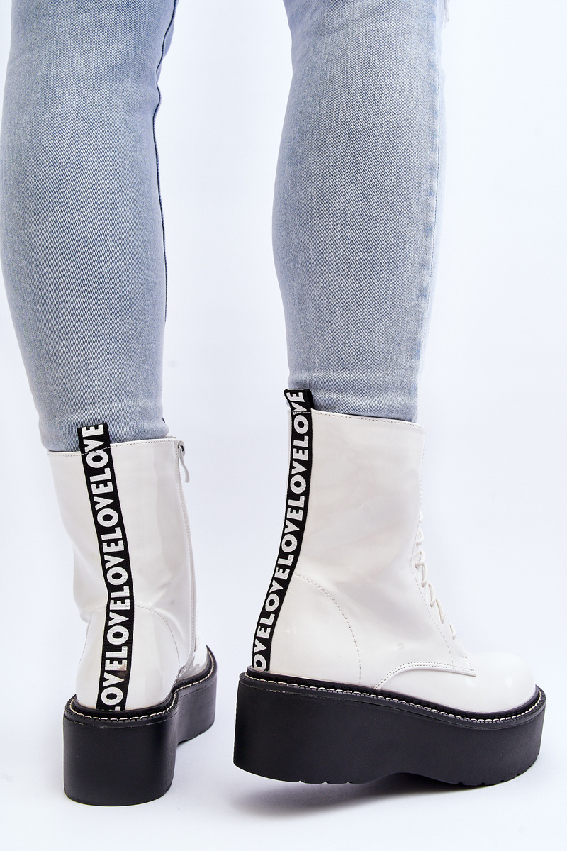 Women's White Patent Leather Boots with Chunky Sole Movana