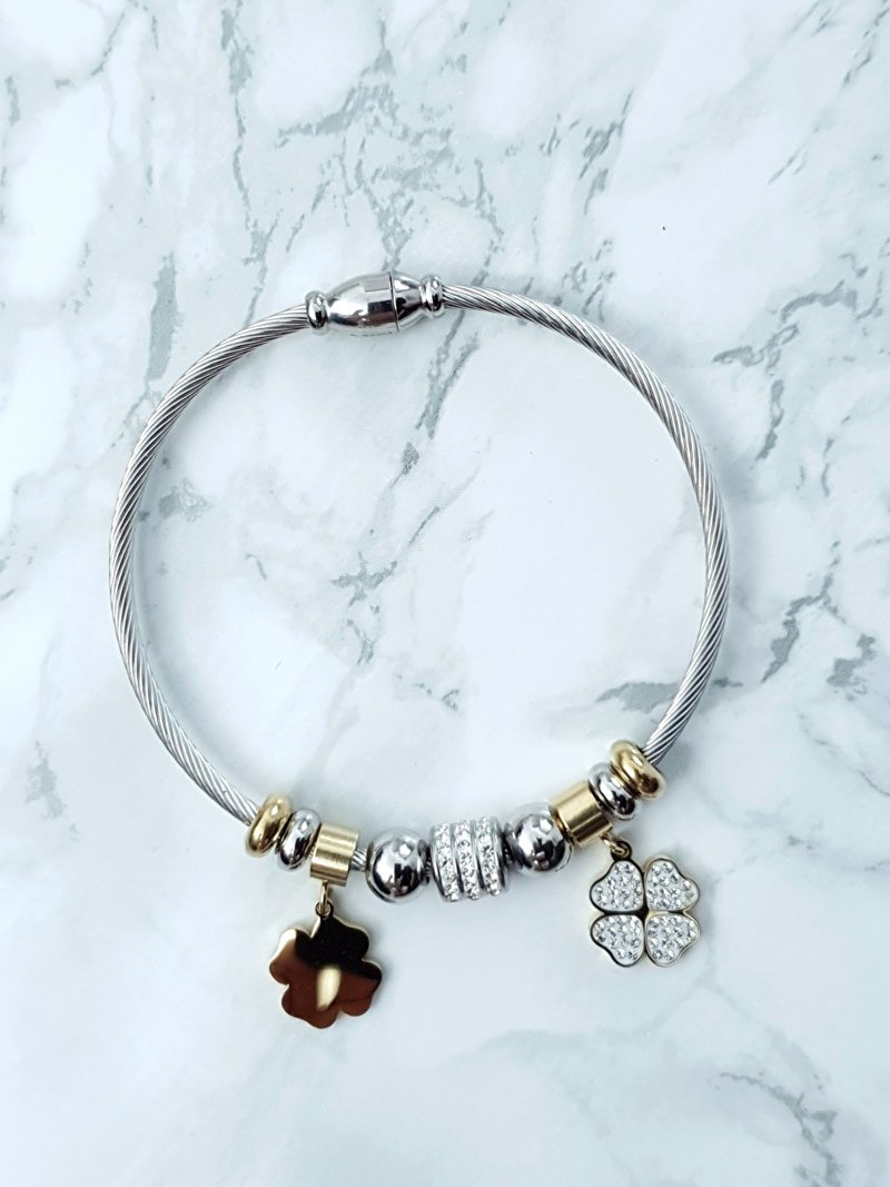 Women's Wire Bracelet Rose Gold Clovers Pendants Charms