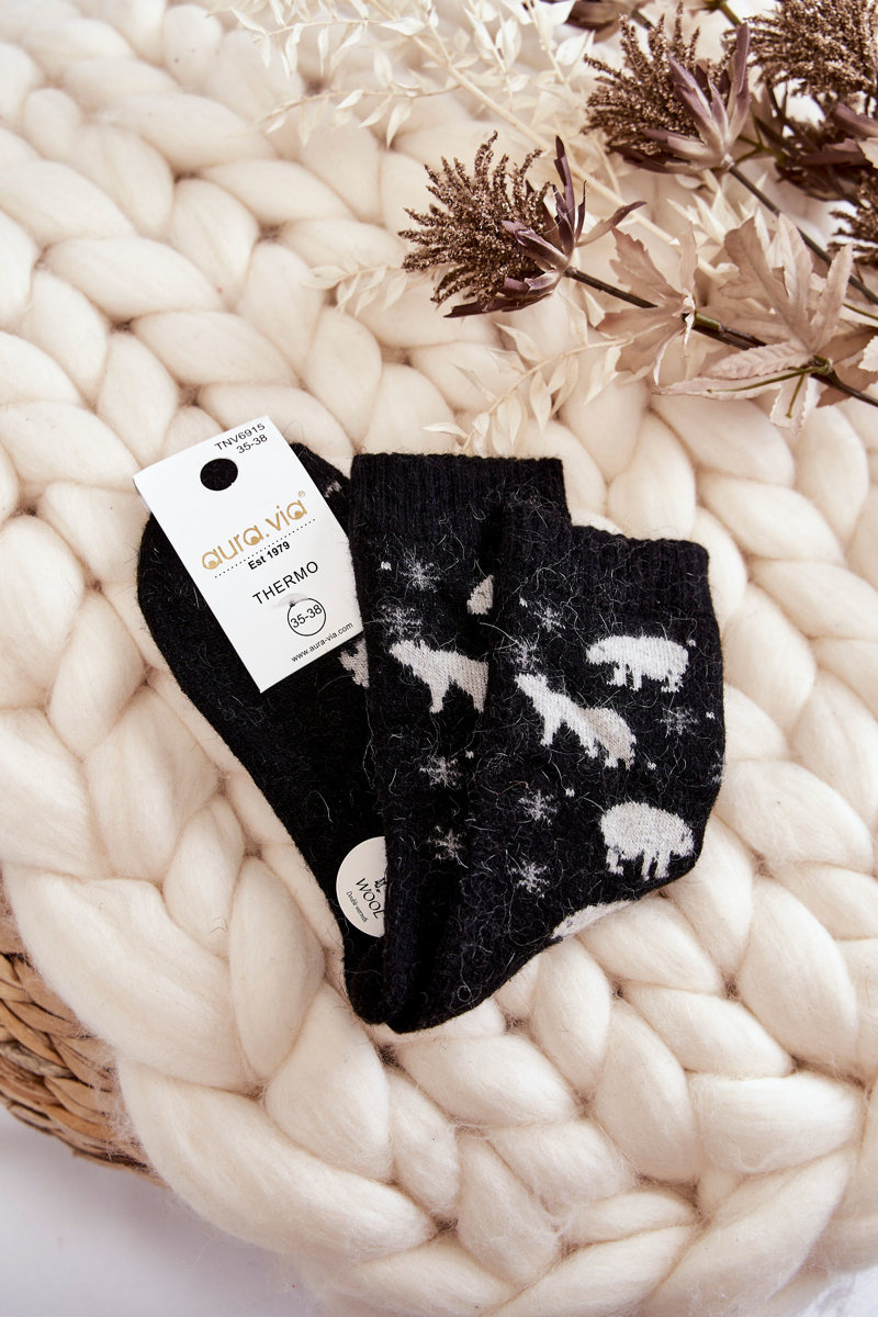 Women's warm socks are made mainly of angora and wool. Perfect for cold days. They have winter patterns with polar bears. The delicate welt will make them fit perfectly. These thermoactive socks are perfect for every cold!