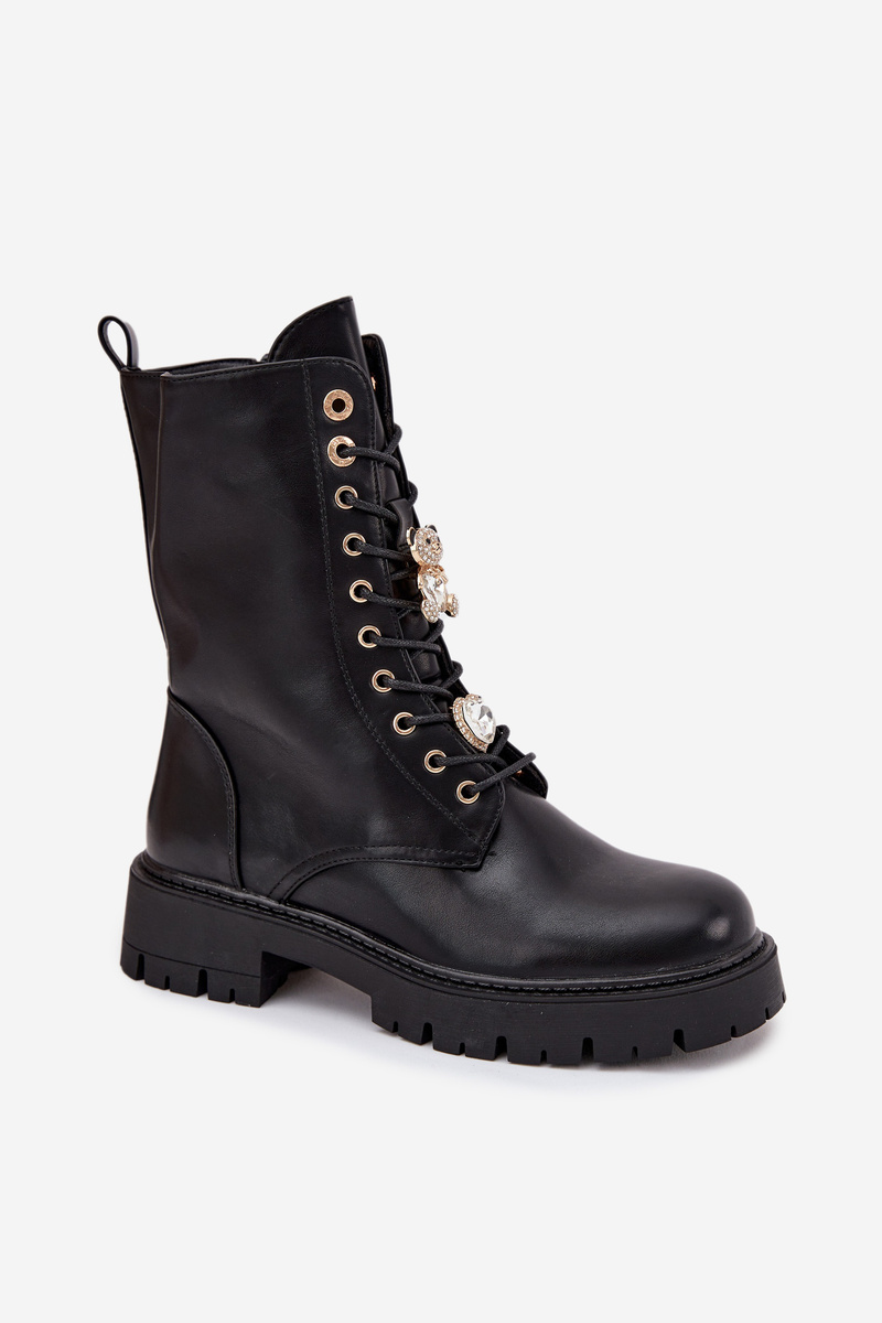 Women's Worker Ankle Boots With Pins Insulated Black Lomina