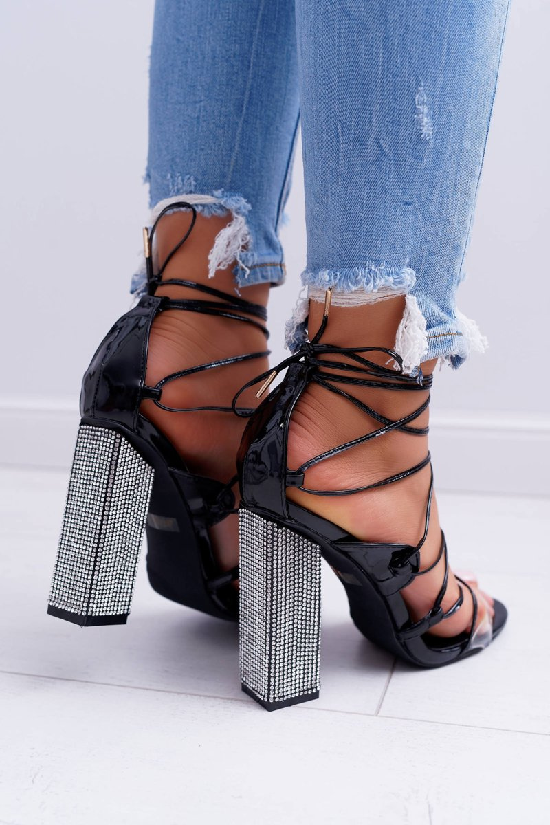Women's Zirconia Stiletto Sandals Tied Black Everything
