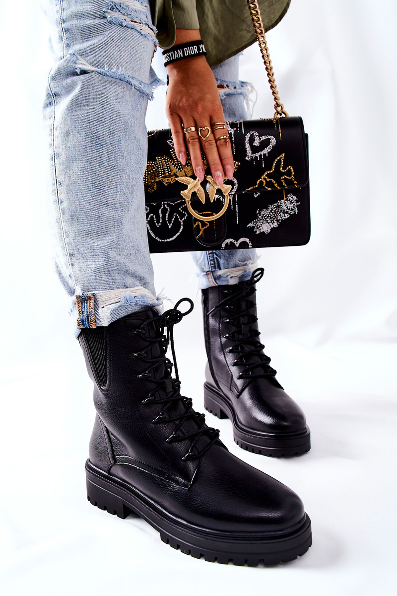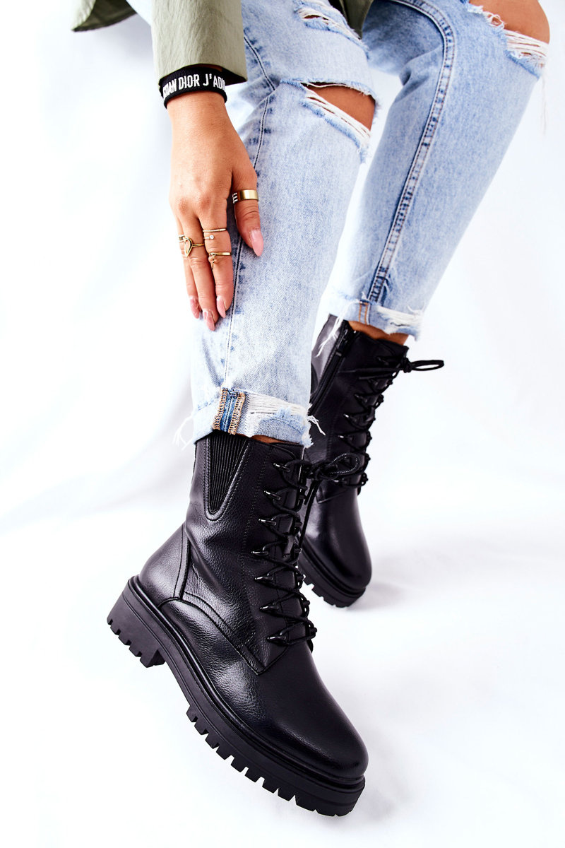 Elegant and stylish boots by Sergio Leone. The boots are made of high-quality eco leather. Classic cut will match many stylisations. Booties have a zipper and binding, thanks to which they can be adjusted. They also have a delicate welt on the outside. The inside is insulated with shoe blanket.
