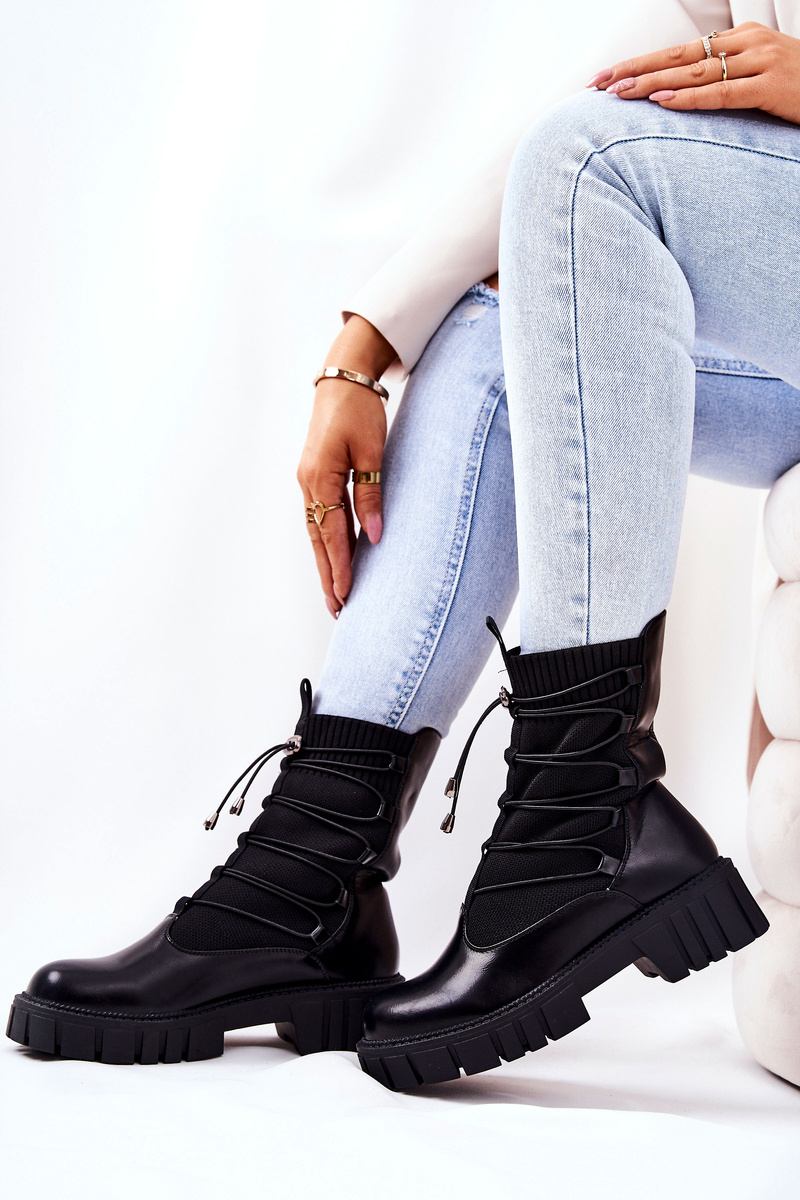 Great boots that will meet your requirements! Soft sock upper and solid sole - this model will express your character! Fashionable cut with an elastic band with a welt at the top of the upper. Made of eco leather and fabric. Soft warming in a form of fur will provide protection against the cold. A must-have! Please refer to the size chart when choosing your size