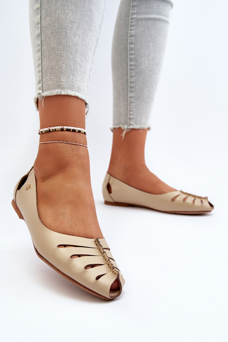 Classic ballerinas are made of natural leather. In addition, they have cutouts on the front and back of the upper. A leather, soft insole will ensure comfort. A flat heel will ensure stability at every step. They are perfect for both elegant and casual styling. The ballerinas also have a stiffened heel counter. When choosing a size, please refer to the size chart.