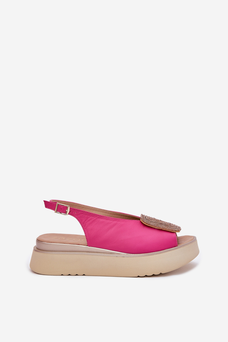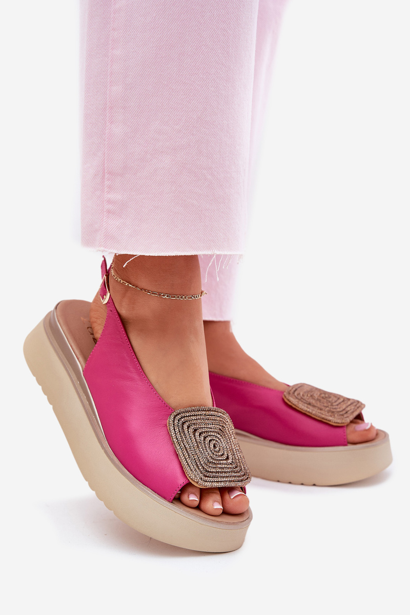 Zazoo 1786 Leather Women's Sandals On Platform With Decoration Fuchsia