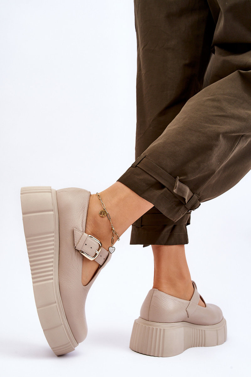 Zazoo 20102 Stylish Leather Loafers on Chunky Platform Beige