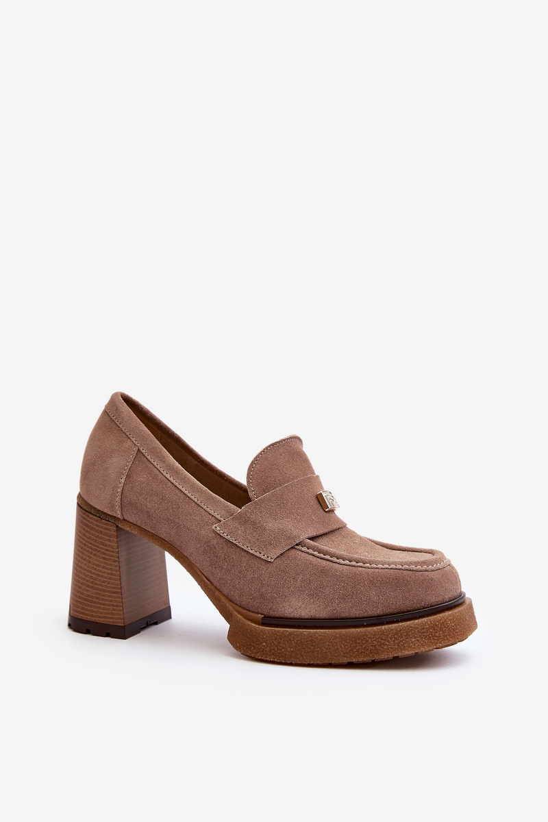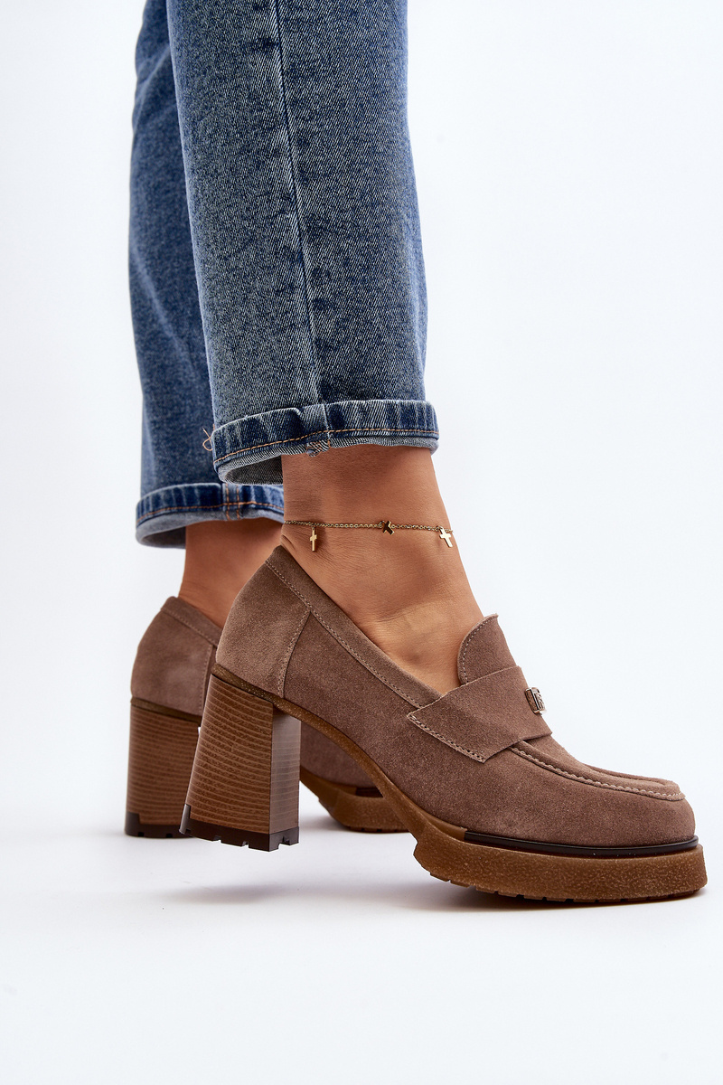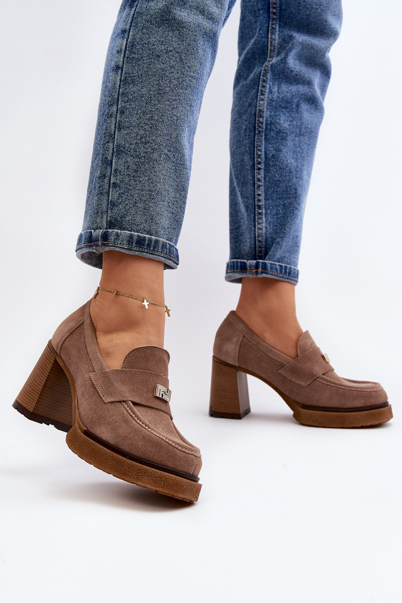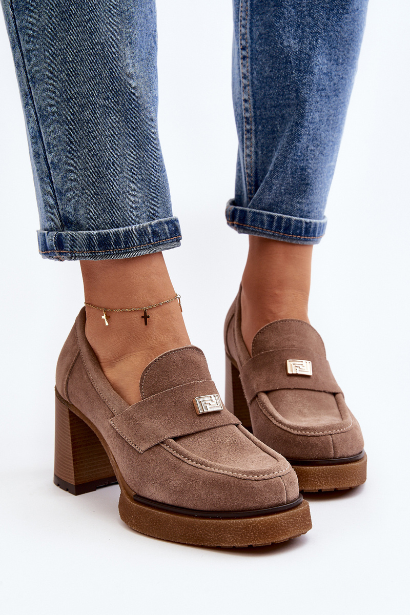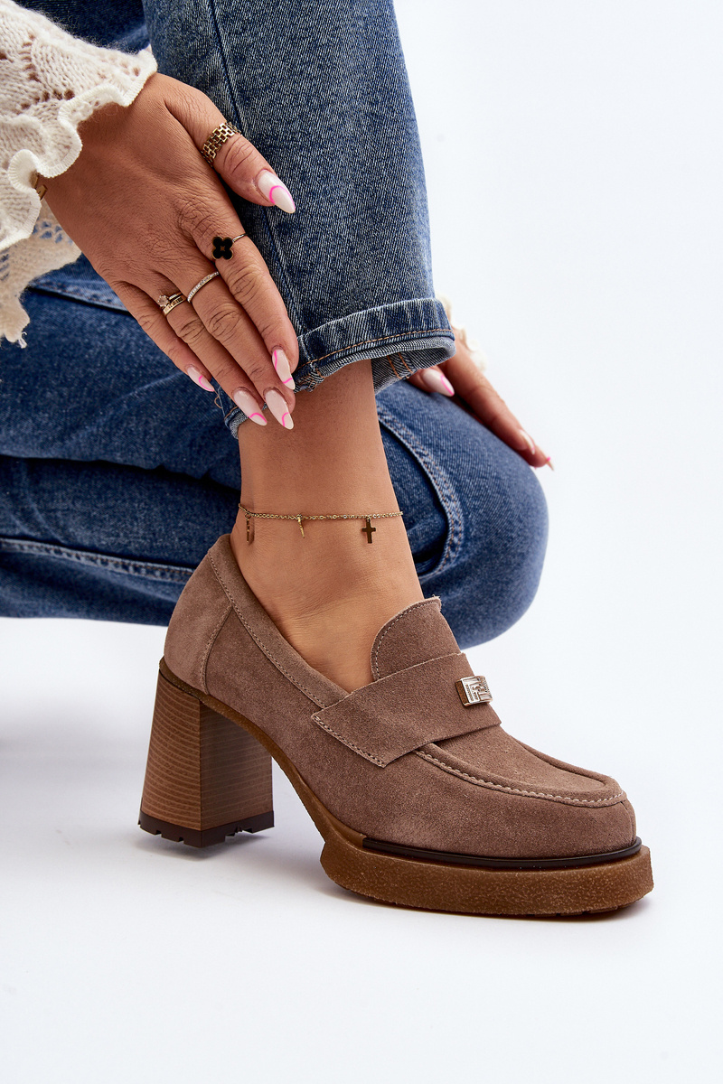 Zazoo 20169 Suede High Heel Shoes Dark Beige