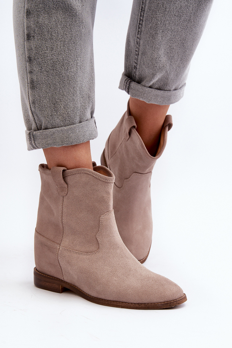 Women's boots made of natural suede. Set on a flat heel with a hidden platform. Rounded toes. Insole made of natural leather provides comfort during use. You can match this classic model with many styles! When choosing a size, please refer to the size chart.