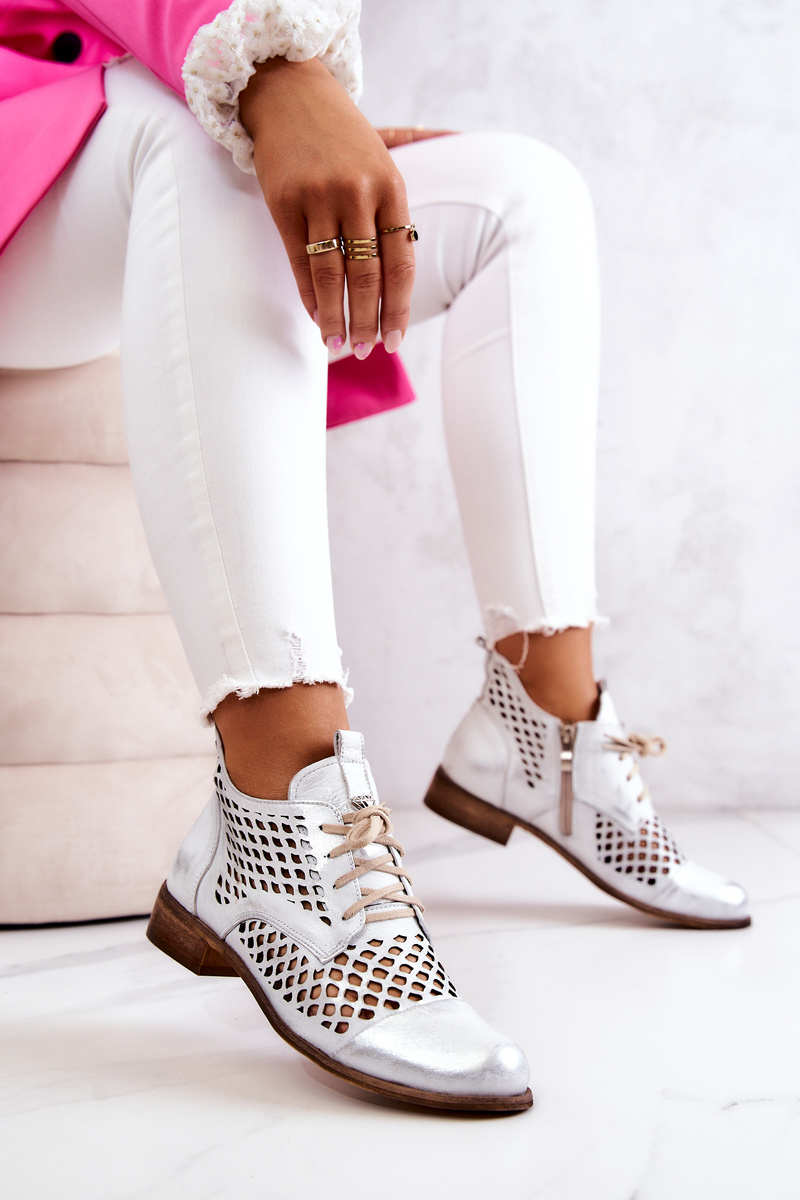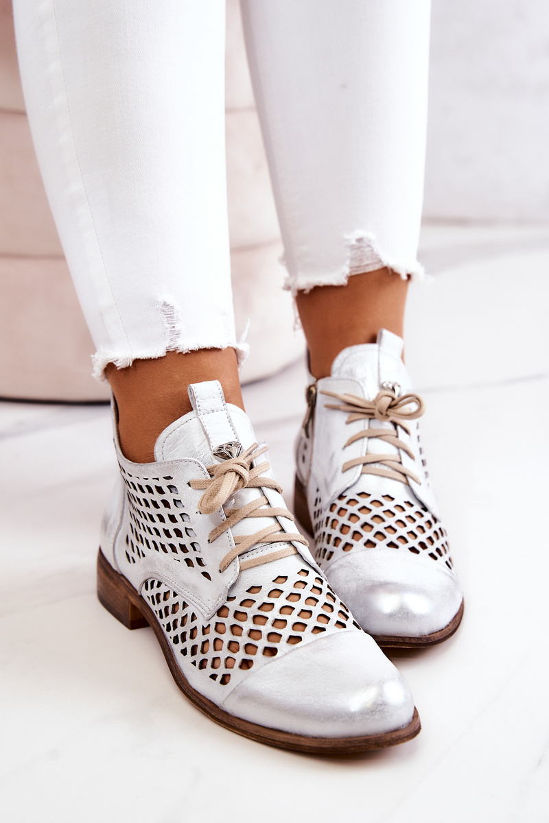 Zazoo 2704 Leather Cut-out Boots White-Silver