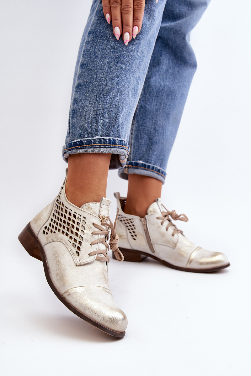 Zazoo 2878 Low Cutout Leather Women's Boots Silver