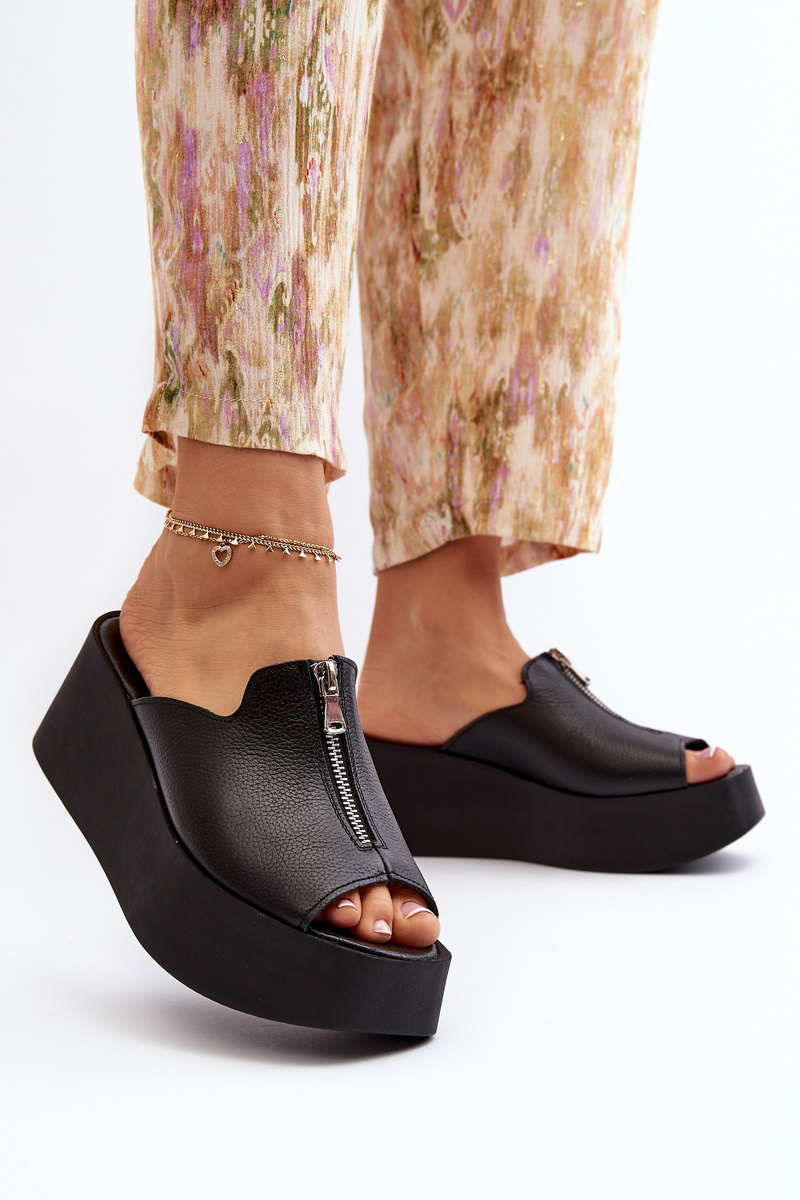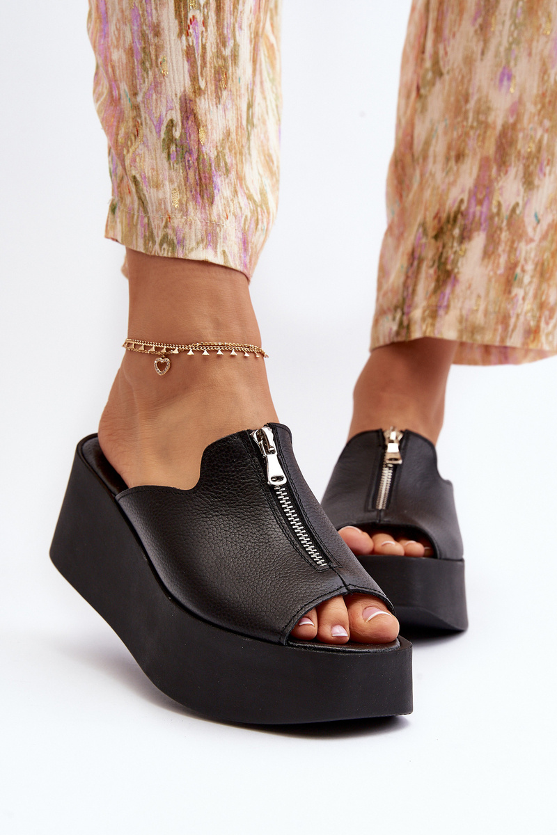Zazoo 2916 Women's Slides on Chunky Platform with Zipper Black