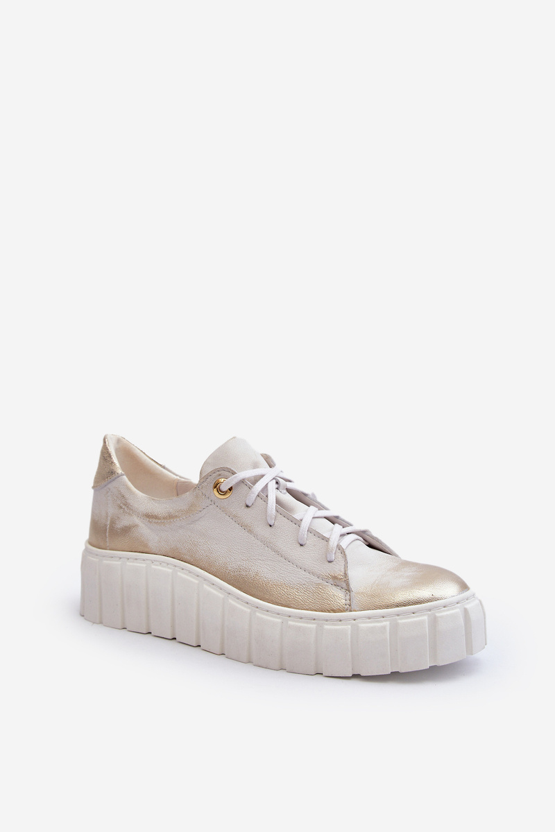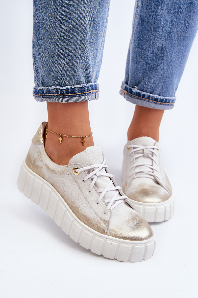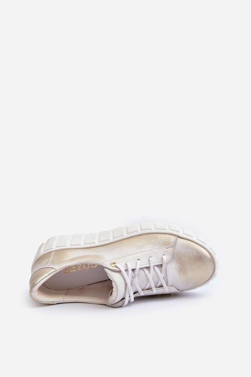 Zazoo 2919 Women's Leather Loafers On Thick Sole Gold