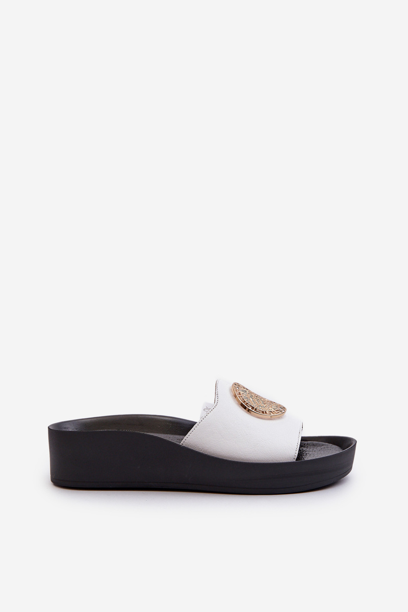 Zazoo 2920 Leather Women's Wedge Sandals With Gold Detail White Zazoo 2920