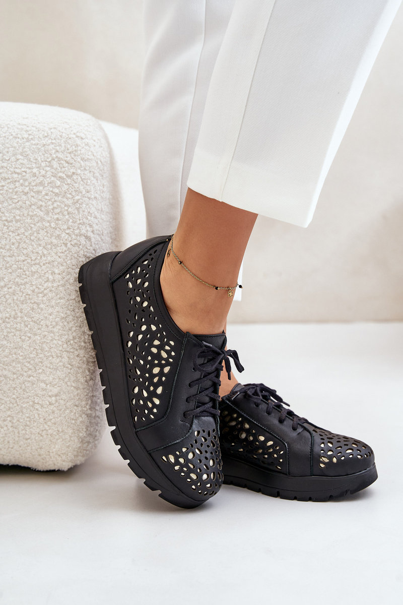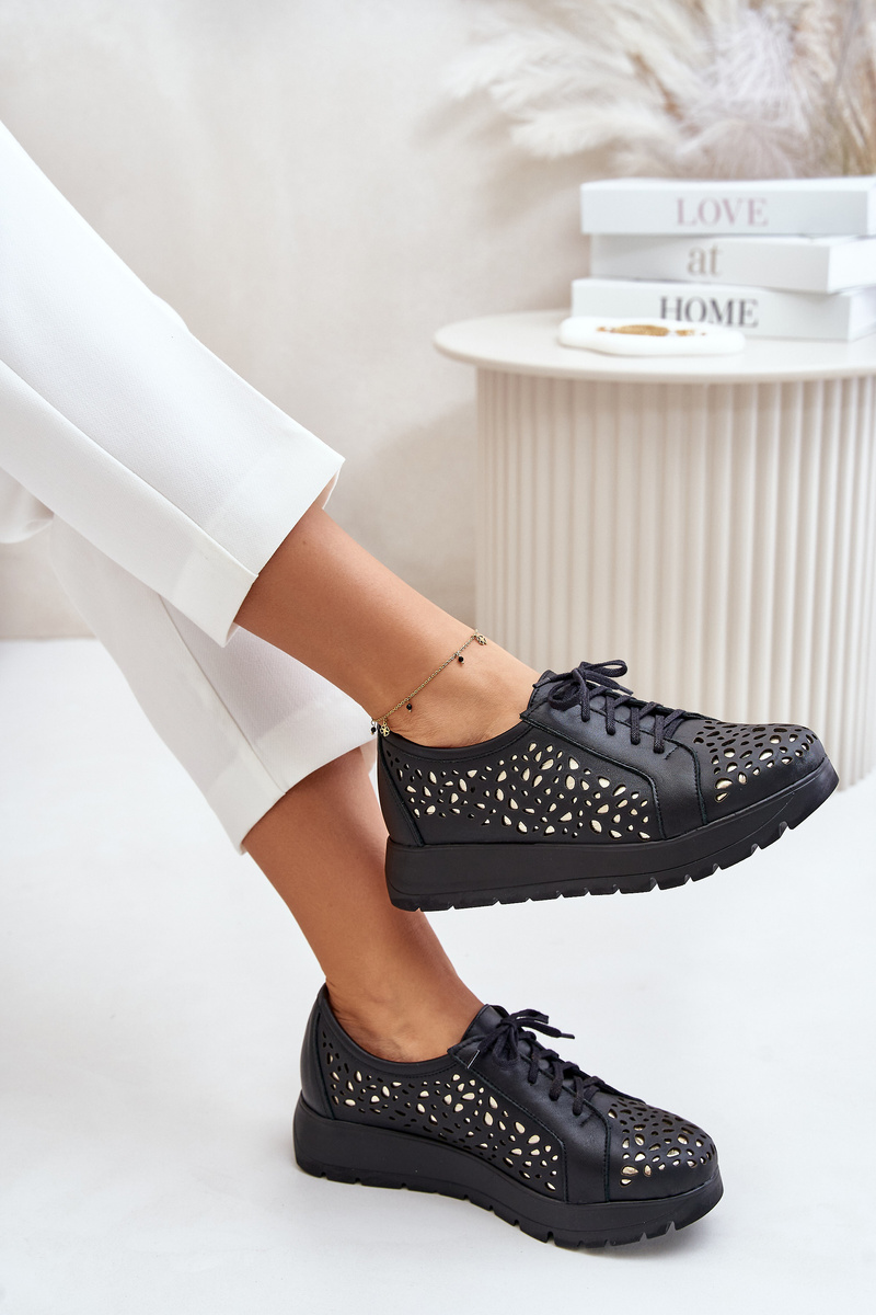 Zazoo 2973 Leather Platform Shoes With Cut-Out Design Black