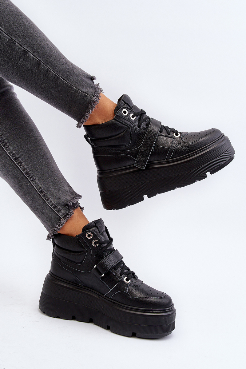 Women's sneakers made of high-quality natural leather. The lacing enriched with an additional Velcro fastening ensures an excellent fit to the foot, providing stability while walking. The platform not only adds character to the entire styling, but also provides stability and comfort while walking. Perfect for a walk around the city and for an evening out with friends, these sneakers are an indispensable element in every fashionable woman's wardrobe. When choosing a size, please refer to the size chart.