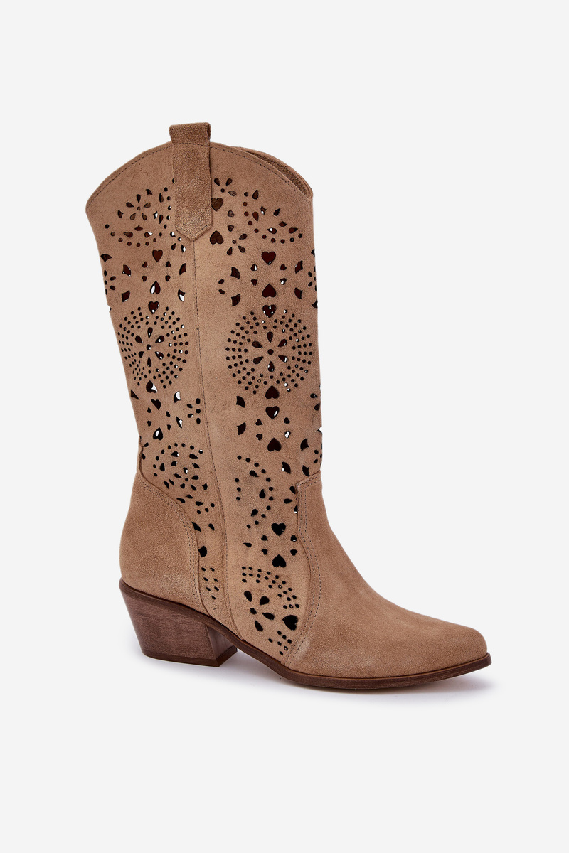 Zazoo 3396 Suede Cutout Mid-Calf Boots Beige
