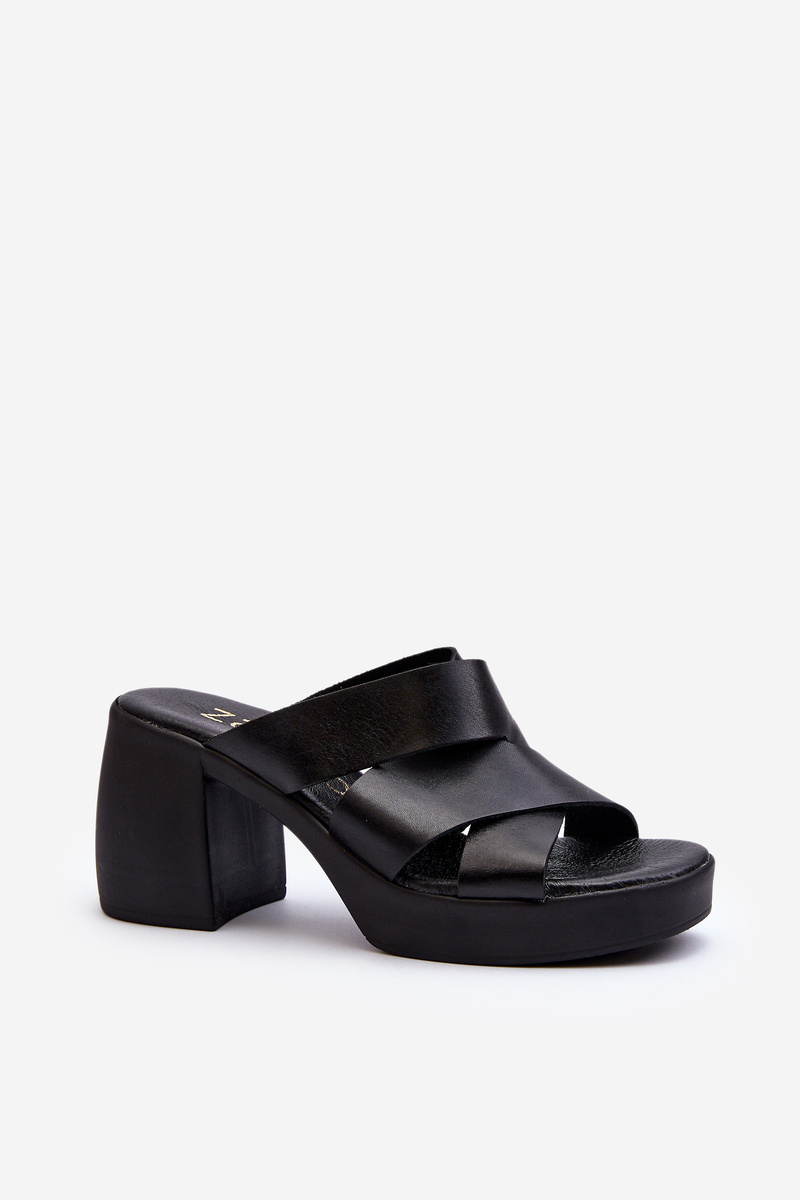 Women's leather sandals made of natural leather. Set on a chunky heel. The soft, leather insole ensures comfort during use. This model perfectly complements styling with summer dresses and skirts. You must have them! When choosing a size, please refer to the size chart.