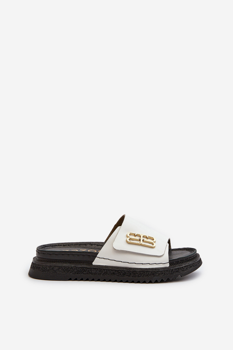 Women's leather sandals made of natural leather. Set on a platform. The strap embellished with a golden detail adds elegance to them. Perfect for summer days, these sandals will complement any outfit, combining functionality with a trendy look. When choosing a size, please refer to the size chart.