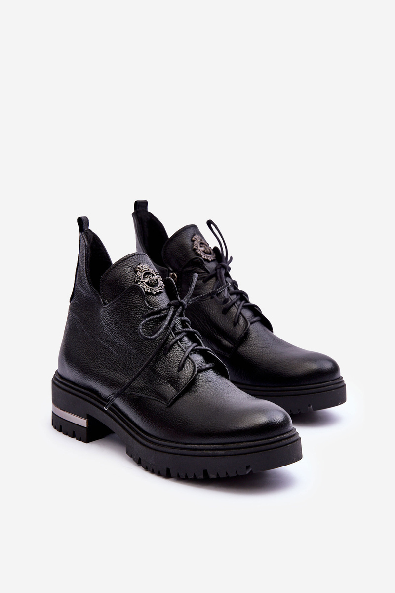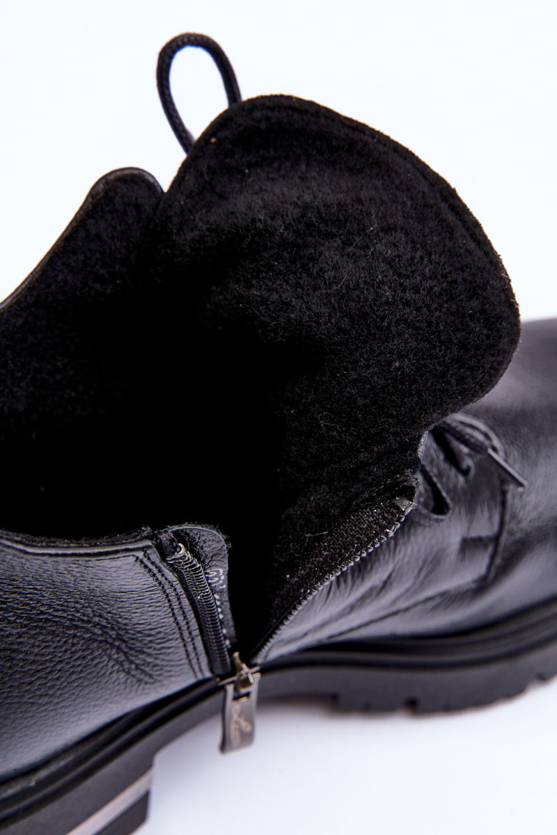 Zazoo 60309 Women's Leather Ankle Boots On Flat Heel Black
