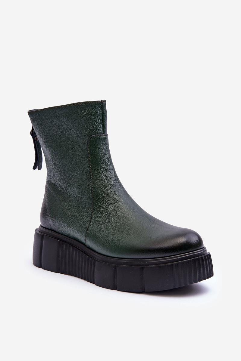 Zazoo 60369 Women's Leather Platform Ankle Boots Green