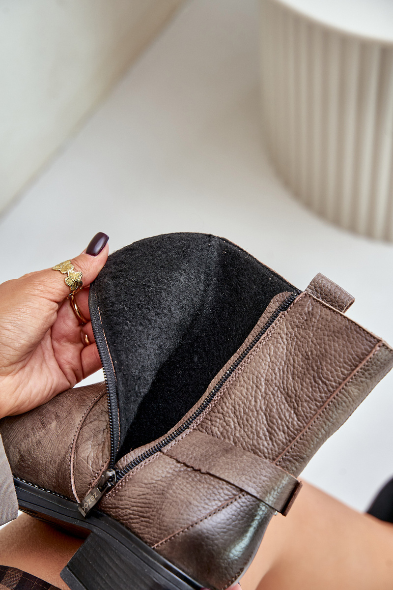 Zazoo 60480 Leather Ankle Boots On Low Heel Insulated Brownish Gray