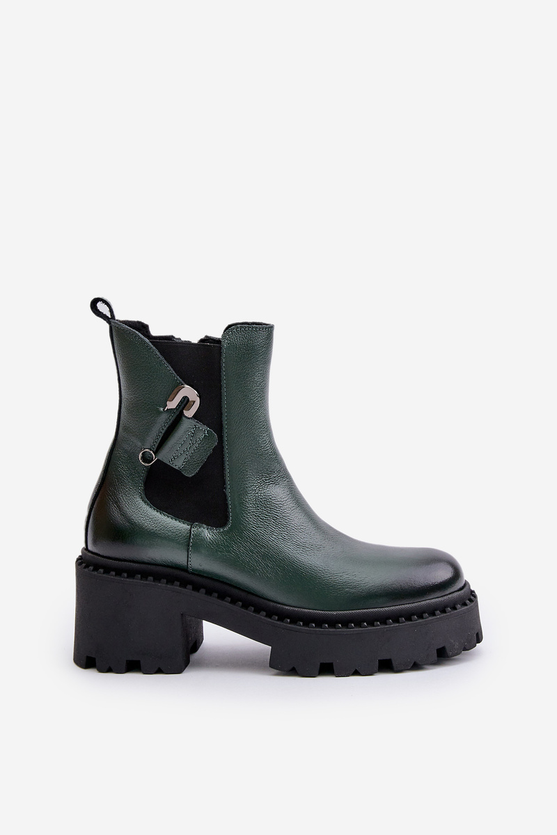 Zazoo 60490 Leather Insulated Boots With Decoration Dark Green