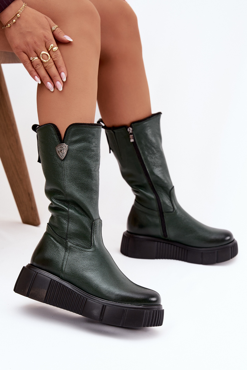 Zazoo 70121 Leather Women's Boots with Wool Olive