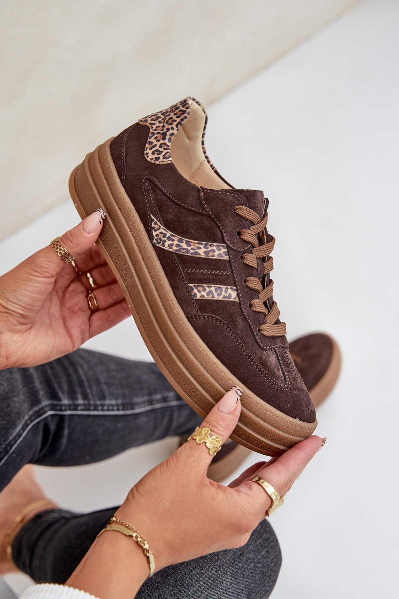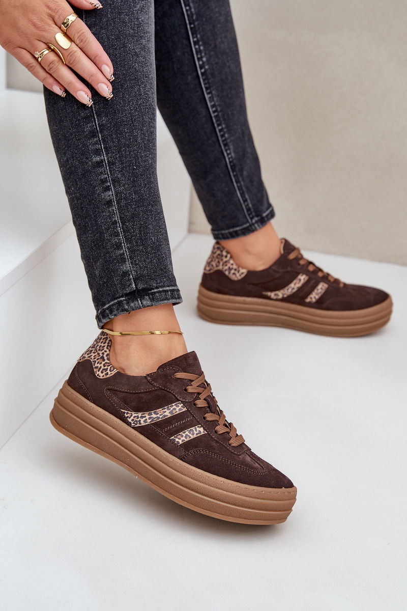 Zazoo N1176 Suede Sneakers On Platform Leopard Chocolate