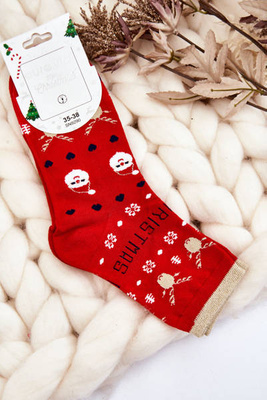 Women's Socks With Christmas Patterns Reindeer And Snowflakes Red