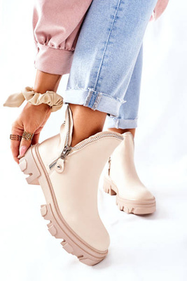 Women's Suede Boots With Cut outs Lewski Beige Sand 3075