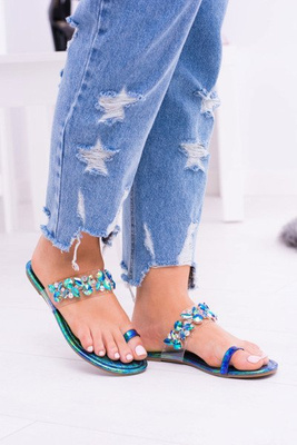 Lu Boo Elegant Petrol Sequins Tanut Flip Flops